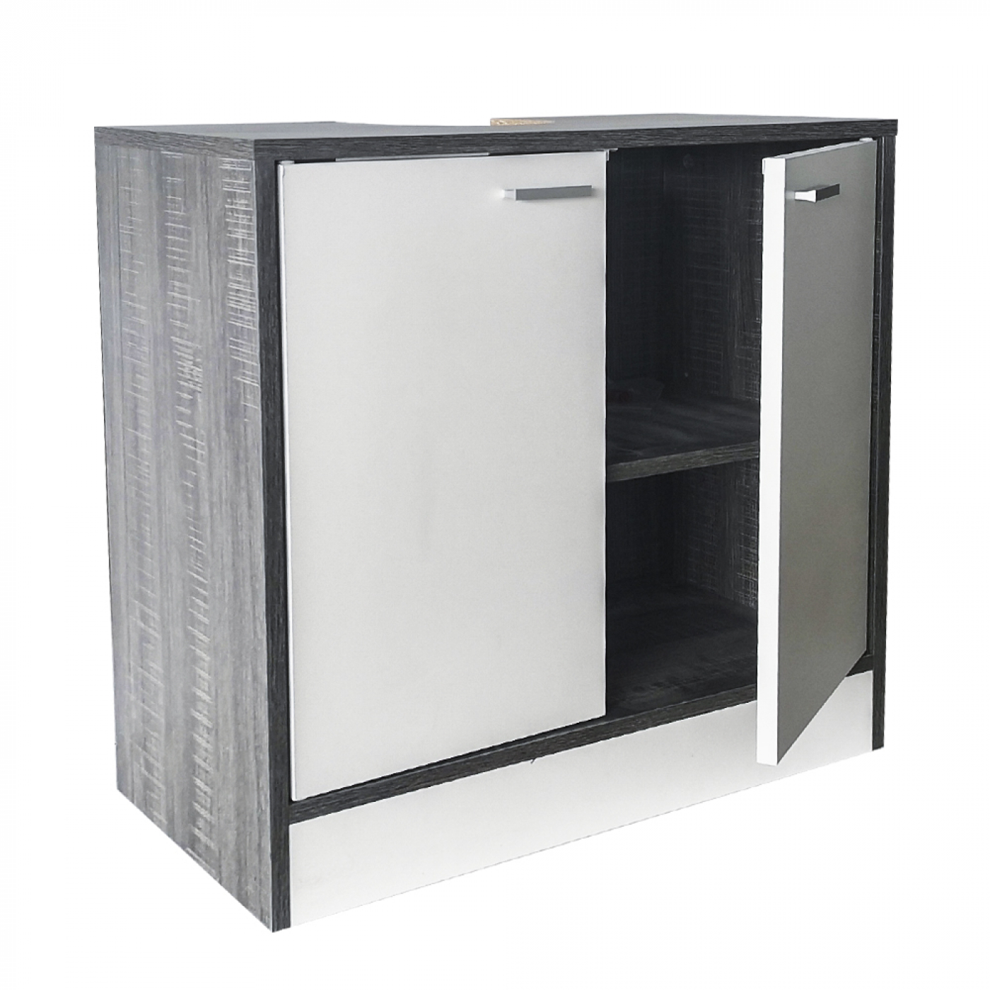 Ein Badmöbel in grauer Tünche, das sich als Unterschrank platzsparend unter der Spüle eignet und ideal für Ordnung in jedem Badezimmer ist. Zwei französische Türen mit einem großen offenen Stauraum und einem Regal. Die Melaminoberfläche sorgt dafür, dass dieses Badmöbel sehr leicht zu reinigen ist und weniger empfindlich gegen Feuchtigkeit ist. Bitte beachten Sie, dass die Lieferung ohne Spüle, Wasserhahn und Spiegel und die Höhe 60 cm beträgt. Wird der Waschtisch höher an der Wand montiert, kann ein Freiraum zwischen Waschtisch und Unterbau entstehen Farbe: grau. Maße: 60 cm hoch, 60 cm breit, 30 cm tief. Die Lieferung beinhaltet Anleitung und notwendiges Montagematerial.