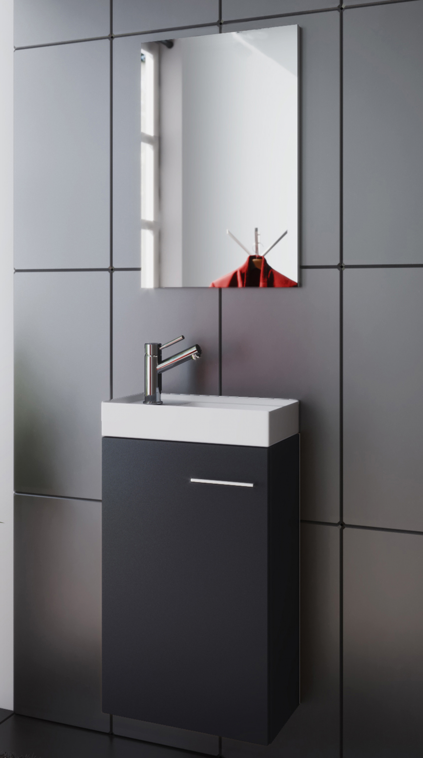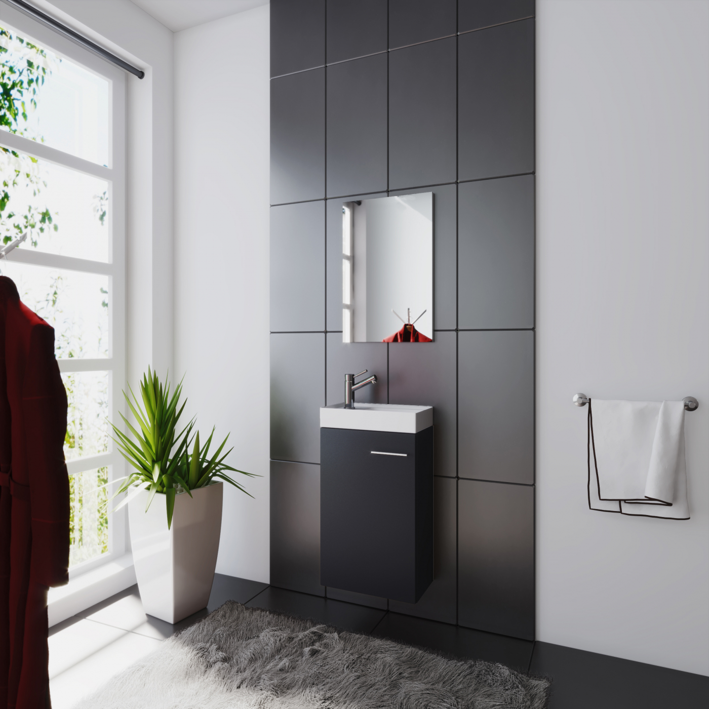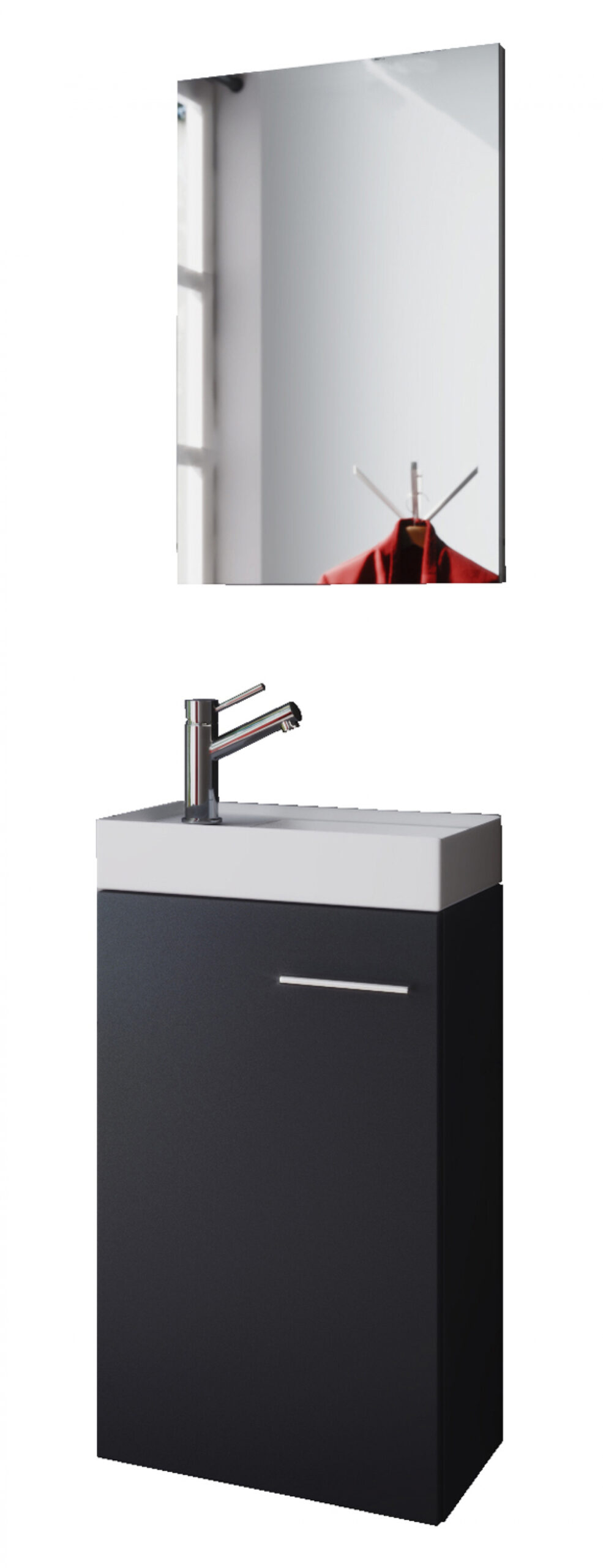 Waschbeckenunterschrank Garcia Möbel inklusive Spüle + Spiegel schwarz